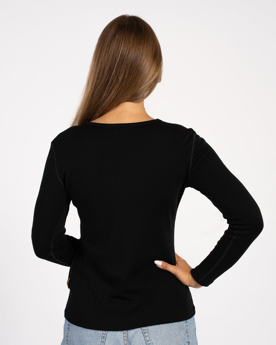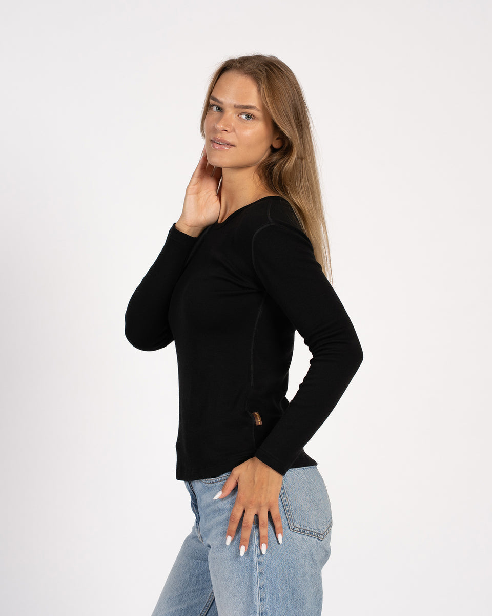 Le tissu en laine mérinos de ce vêtement est produit sans agents de blanchiment ni colorants - votre choix est coloré par la nature. Le fil non teint ne laisse aucune trace, il disparaît dans la Terre.