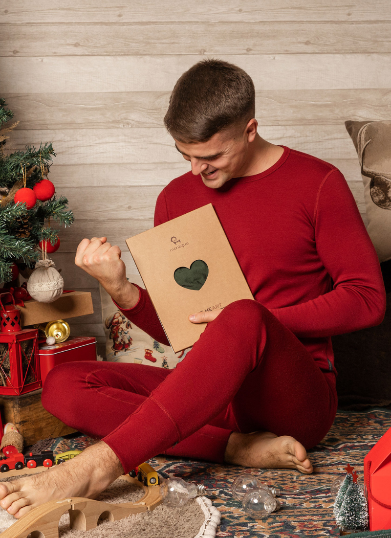 Vous cherchez désespérément un cadeau parfait pour votre père, mari ou ami ? Chez menique, vous trouverez des accessoires naturels et à la mode, tels que des écharpes et des bonnets, qui conviendront parfaitement aux hommes stylés. Si vous cherchez un cadeau pour les hommes actifs, les cache-cou colorés, les bandeaux, les joggings et les chemises activewear seront accueillis avec un grand sourire. S'entraîner ou simplement marcher - des accessoires légers et confortables ainsi que des vêtements les garderont au chaud et ne transpireront pas du tout. Respirant et léger 100% laine mérinos apportera une nouvelle vague de confort au placard de votre bien-aimé. Surprenez votre homme avec confortable pyjama assorti, qui sera parfait pour les matinées et bien d'autres soirées en famille.