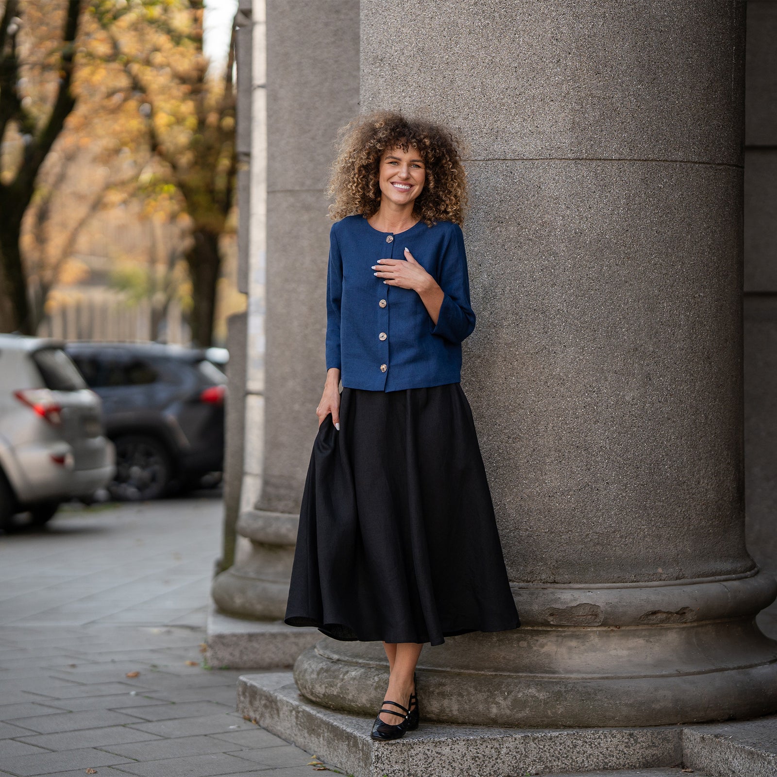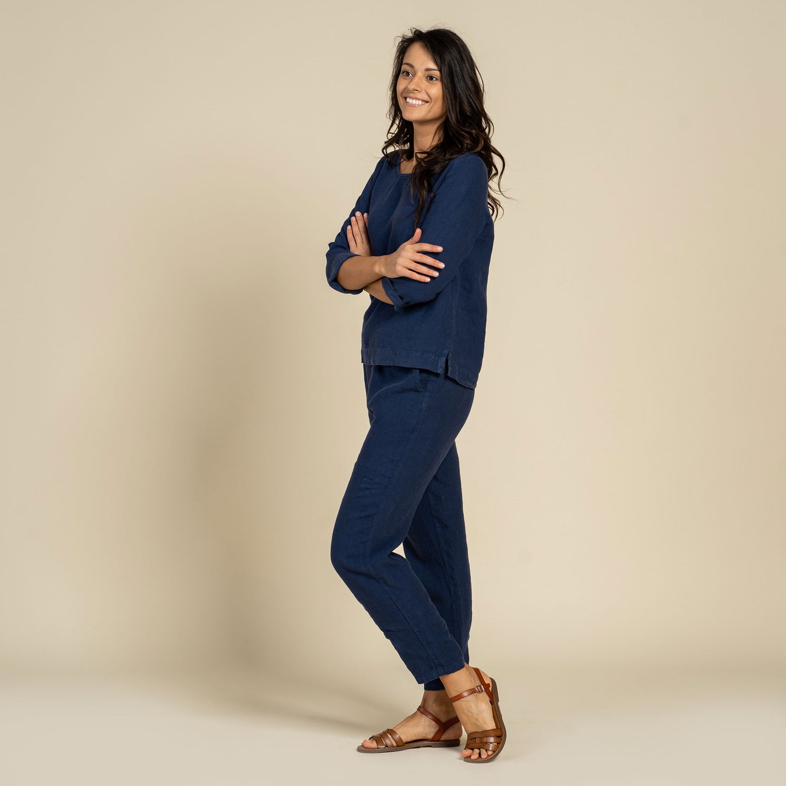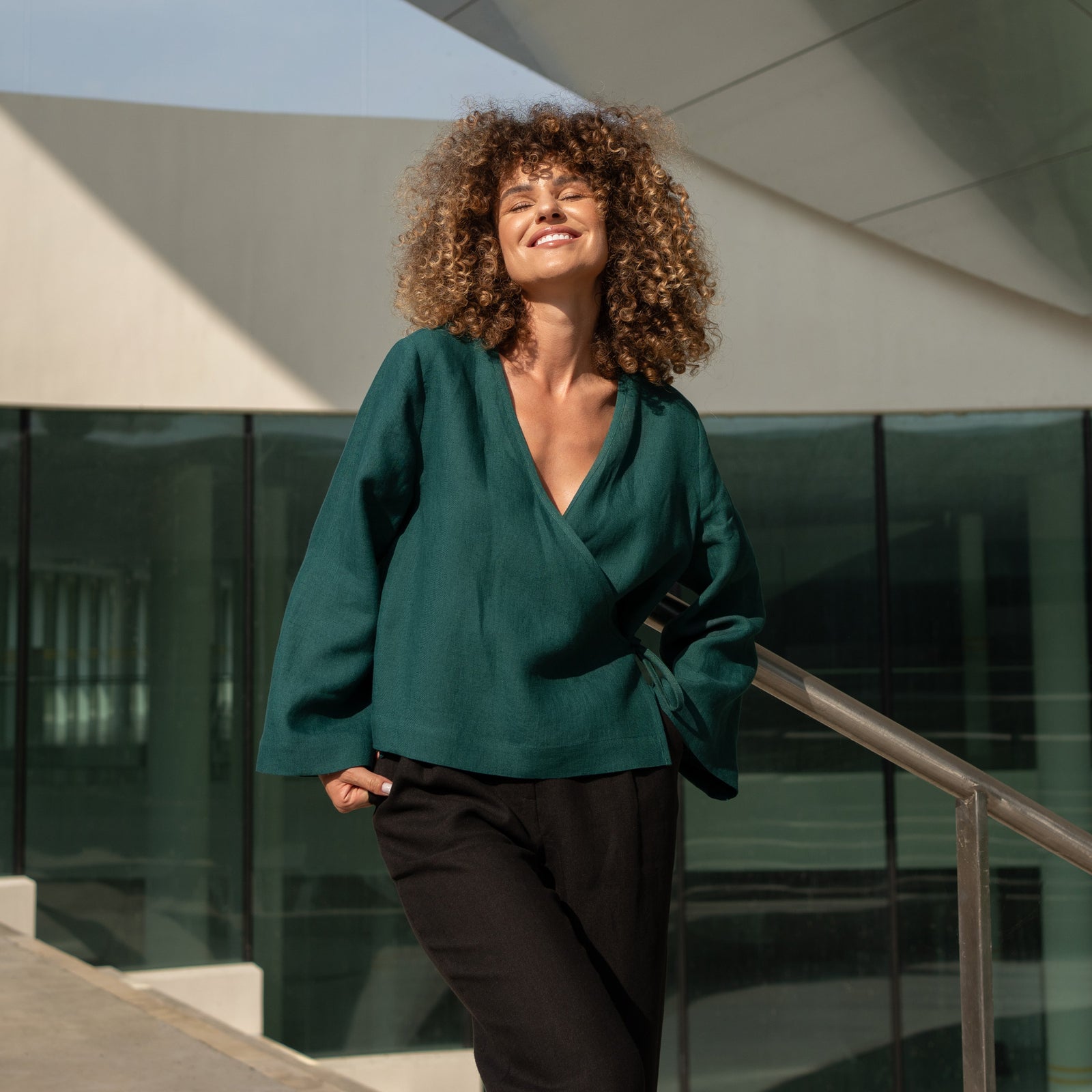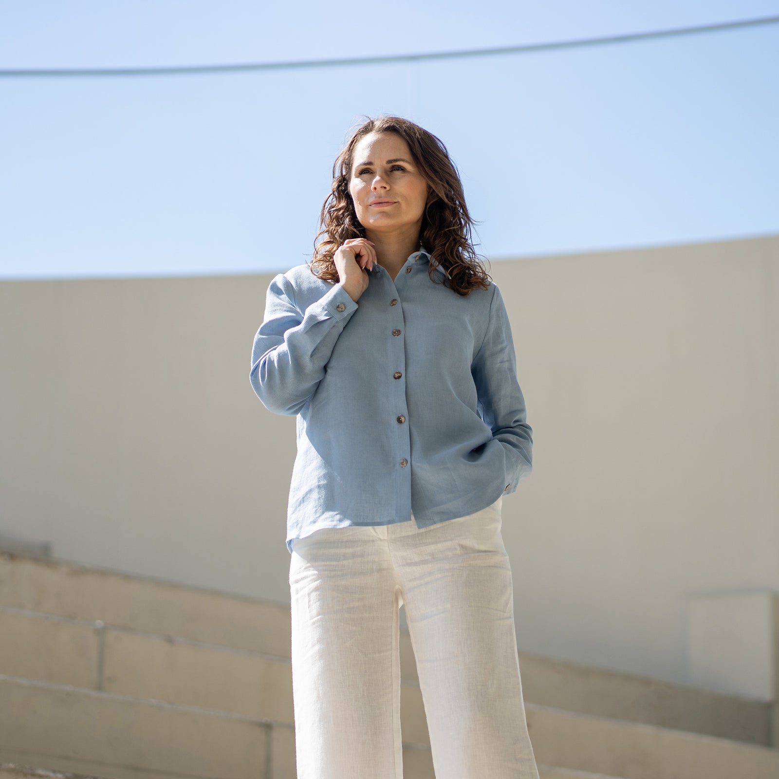 Qui a dit qu’il fallait ranger ses pièces de linge lorsque les feuilles commençaient à tomber ? L'automne peut apporter des moments froids, mais n'ayez crainte : avec un peu de créativité, vous pouvez totalement faire fonctionner le lin même lorsque la température commence à baisser. L'une des règles d'or par temps froid est la superposition, alors enfilez un pull douillet ou un joli tricot sur vos pièces en lin et vous êtes prêt à partir. Sinon, choisissez des chemisiers ou des robes à manches longues et optez pour des pantalons stylés. Restez confortable, restez mignon et laissez votre linge briller à travers la brise d'automne !