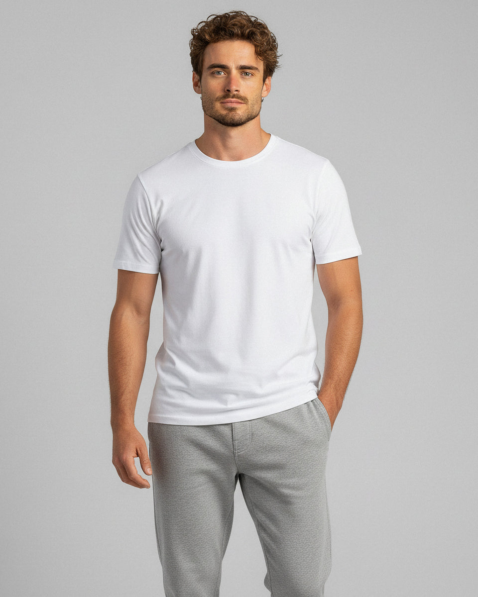 Fabriqué à partir de 95 % de tissu en bambou premium, ce T-shirt pour homme à coupe régulière offre un confort ultra-doux et une sensation légère et respirante. Le matériau en bambou est absorbant l'humidité et naturellement antibactérien, aidant à réduire la transpiration et à combattre les odeurs pour une fraîcheur tout au long de la journée. Conçu comme un T-shirt à col rond pour homme avec une légère élasticité, ce tee-shirt en bambou bouge facilement et reste confortable au contact de la peau. Ce T-shirt en bambou pour le sommeil et la détente est idéal pour se relaxer à la maison, voyager ou être porté comme couche de base toute l'année. Durable et facile d'entretien, ce haut en bambou conserve sa douceur et son aspect net lavage après lavage.