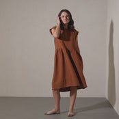 La robe Cecilia présente une coupe ample et ample, et sa taille est conforme à la taille indiquée. Veuillez noter que le vêtement s'assouplit et se détend naturellement au fil de la journée. Il gagnera en confort au fil de vos mouvements.