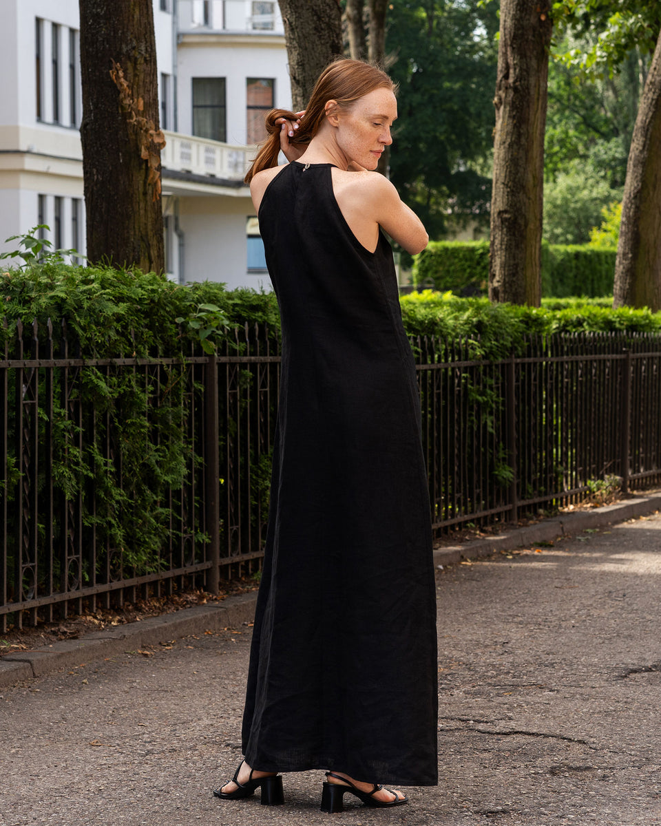 La robe d'été maxi en lin met magnifiquement en valeur votre cou et vos épaules, avec une jupe superposée cousue pour un ajustement confortable. La robe élégante à col halter offre une coupe flatteuse et qui sculpte la silhouette. Cette robe d'été bio pour femmes est idéale pour un mariage en tant que robe de demoiselle d'honneur, une baby shower, des événements en soirée et autres occasions formelles.